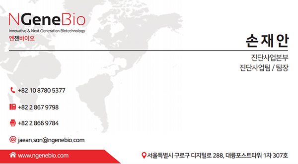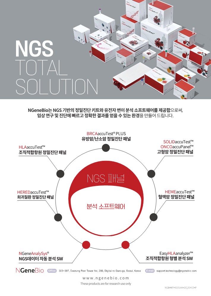 NGS 정밀진단 선도기업 엔젠바이오는 바이오 기술과 IT 기술 결합을 통한 정밀진단 플랫폼 구축으로 국내∙외 정밀진단 기술을 선도하는 글로벌 정밀의료 혁신 기업입니다. 엔젠바이오는 2017년 국내 최초 차세대 염기서열 분석(NGS) 기반 유전성 유방암 및 난소암 정밀진단 제품 상용화를 시작으로 혈액암, 고형암, 희귀유전질환, 조직적합항원 정밀진단 제품 등 다양한 종류의 제품 포트폴리오를 구축하고 있습니다. 또한 엔젠바이오는 임상검사실에서 방대한 유전체 데이터를 정확하고 손쉽게 분석할 수 있도록 생물정보학(BI)과 IT 기반의 기술이 집약된 분석 소프트웨어를 상용화해 제품과 함께 제공하고 있습니다. 특히 엔젠바이오의 NGS 패널 및 분석 소프트웨어는 정확한 설계, 정교한 검증 및 고도화된 기술 등을 통해 임상적 유효성을 확보하였으며, 최상의 정밀의료 서비스를 위해 진단제품과 검사 서비스 모두 엄격한 품질관리시스템을 통해 관리하고 있습니다. 현재 엔젠바이오는 기술 경쟁력을 기반으로 다양한 제품을 국내 다수의 대학종합병원에 공급하고 있으며 전 세계 20여개 대리점을 통해 활발히 수출 성과를 창출하고 있습니다. 또한 지속적인 핵심 기술 상용화 및 확장을 통해 진단영역의 다양한 분야 확대를 추진하고, 항암제 관련된 동반진단(CDx), 질병의 예후와 예측에 필요한 액체 생검, 결핵 및 바이러스 등과 관련된 감염병 진단 분야에서도 가시적인 성과를 창출하며 기술 및 사업 확장을 지속하고 있습니다. 엔젠바이오는 전 세계 고객을 대상으로 예측/예방/맞춤 의료를 실현할 수 있는 정밀진단 솔루션을 선도하는 혁신 기업을 추구하고 있습니다. 보다 자세한 내용은 www.ngenebio.com에서 확인하실 수 있습니다.
