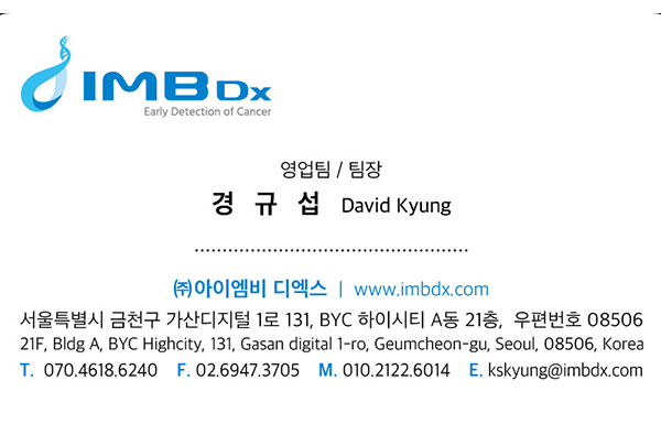 IMB Dx는 혈액 내 암세포에서 나온 DNA의 분석을 통해 암을 진단하고 개인맞춤형 정밀의료를 구현할 수 있는 기술력과 임상 경험을 가진 국내 유일의 액체생검 전문기업입니다. 회사명이 In My Blood Diagnostics 의 약자인 것에서 의미하듯이 혈액을 이용한 액체생검에 높은 전문성을 보유하고 있으며, 자체 보유한 특허기술을 적용하여 암을 정복해가고 있습니다. 더 나아가 AlphaLiquid® 검사를 통해 전세계에 있는 암 환자와 그들의 가족, 그들을 돌보는 의료진에게 유용한 정보를 제공하고, 암의 진단과 모니터링, 치료 방식을 혁신하고 있습니다.
