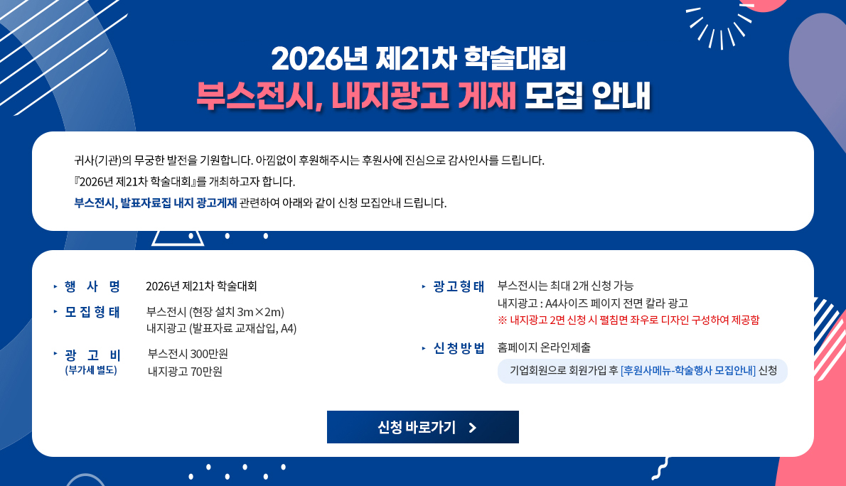 그동안 도와주신 성원으로 우리학회가 발전하고 성장할 수 있도록 관심 가져 주시는 후원사에 다시한번 깊은 감사인사를 드리며,2025년에는 더욱 긴밀히 협력할 수 있도록 노력하겠습니다.